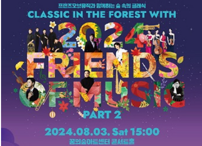 - 청소년 음악회 - 북서울꿈의숲 꿈의숲 아트센터에서 8월3일 음악회를 개최합니다. 고전클래식 레퍼토리부터 영화음악, 애니메이션 OST, 가요까지 다양한 음악 장르로 청소년들의 스트레스를 날려준다고 합니다.